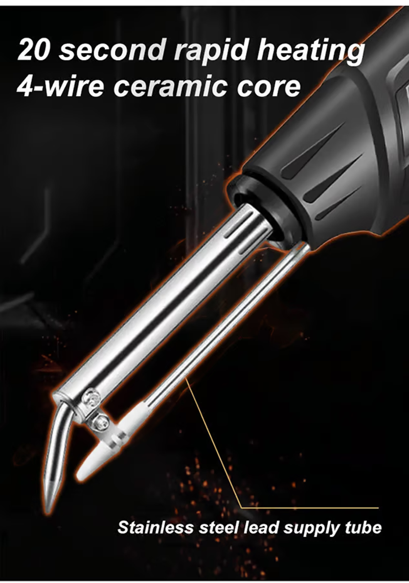 [Ergonomic design]The ergonomic handle design allows easy and stable operation with one hand, making welding more labor-saving, and novices can quickly get started [Internally heated welding gun ]Designed for precision, it can strictly control the welding line. It is also equipped with a fast-heating inner core, which can achieve stable high-temperature welding without external preheating. It is an ideal choice for fine metal processing, line connection and spot welding [Integr